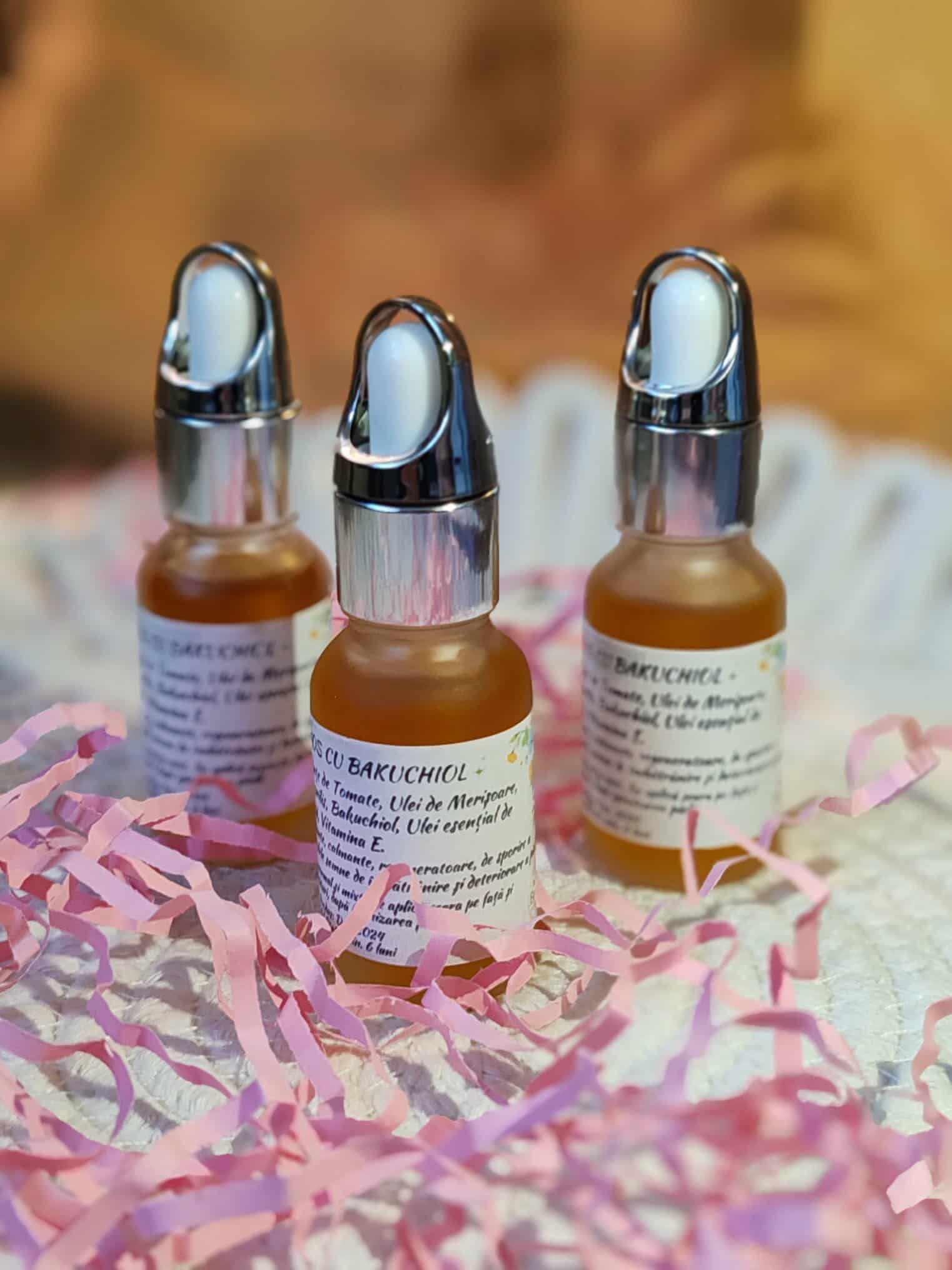 - seruri faciale – ser cu vitamina C 10% și ser cu Bakuchiol care este prima alternativă naturală la retinol, cu proprietăți antioxidante.