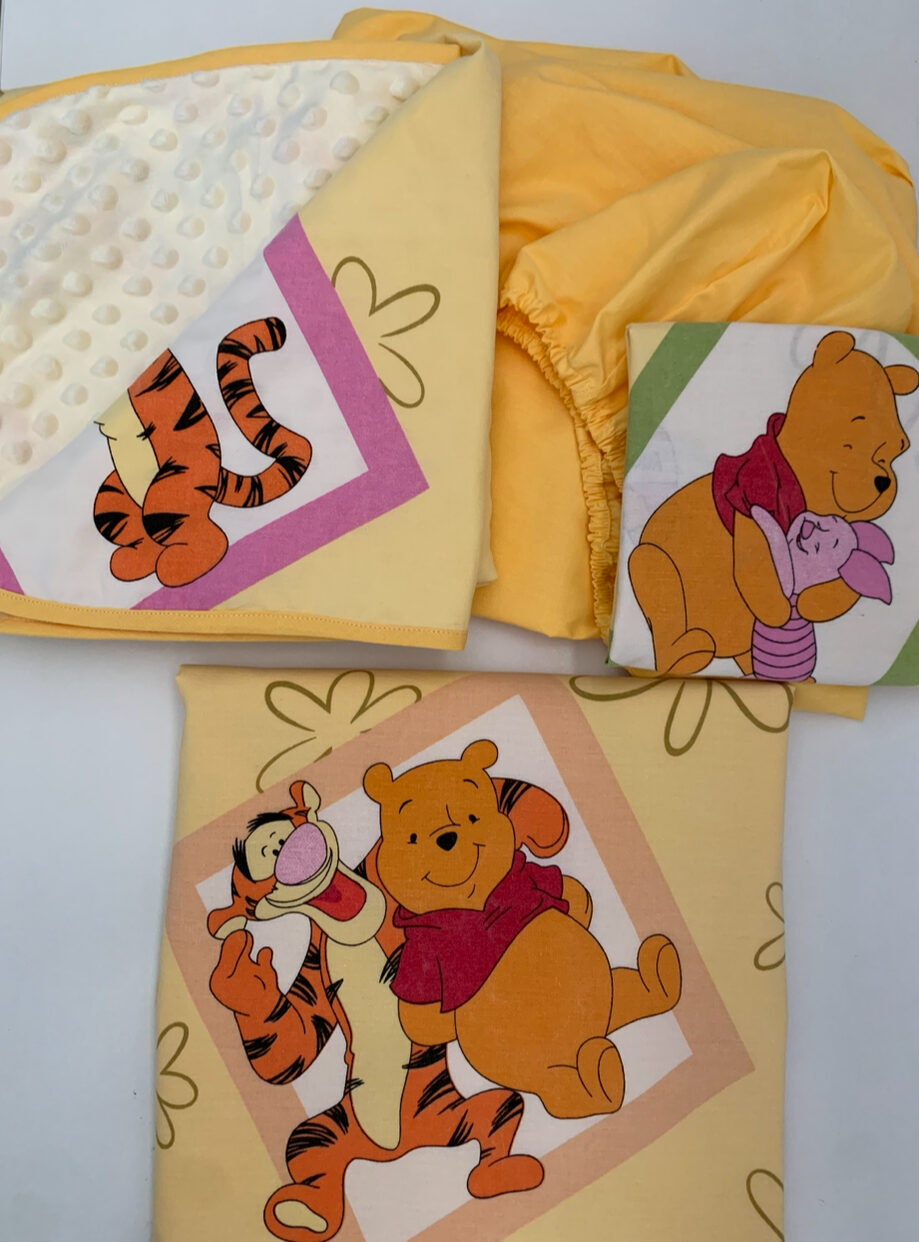 Set lenjerie patut bebe compusa din 4 piese ,100 % bumbac fix, in combinatie placuta de culori, moale la atingere ideala pentru bebelusul tau.