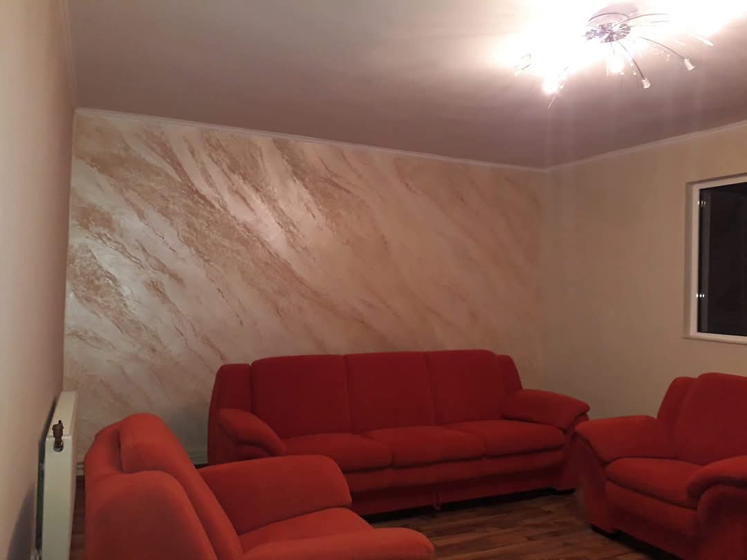 Transformă-ți pereții într-o operă de artă cu această tencuială decorativă unicat, lucrată manual cu migală. Efectul marmorat se îmbină cu texturi de piatră spartă travertin și zgârieturi fine de tip travertin, adăugând profunzime și eleganță oricărui spațiu. Fiecare perete este lucrat cu atenție de Artistul Tău, pentru un rezultat autentic și irepetabil.