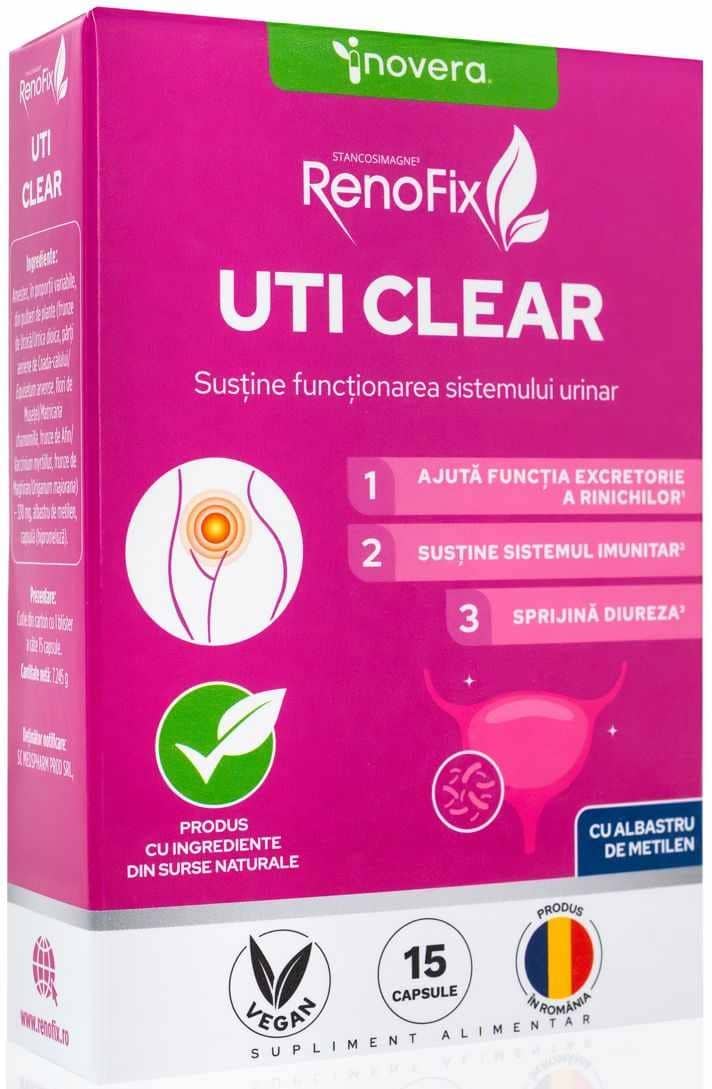 Renofix Uti Clear este un supliment alimentar fabricat din ingrediente naturale care ajută la echilibrarea tractului urinar. El împiedică dezvoltarea bacteriilor și reduce disconfortul cauzat de infecțiile urinare, acționând într-un mod sigur, fără efecte adverse asupra organismului.