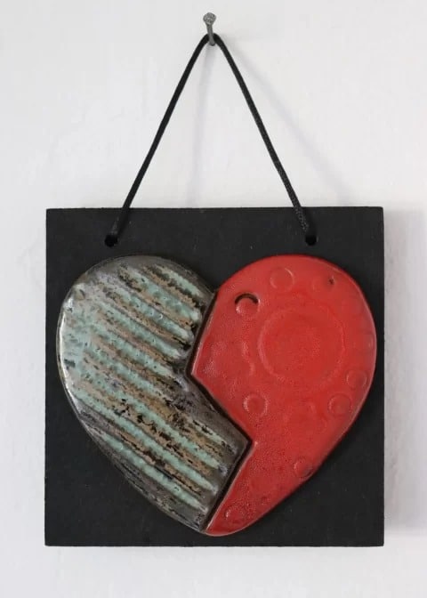 Obiect decorativ in forma de inima din ceramica glazurata.